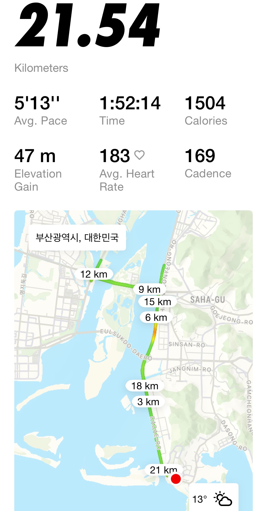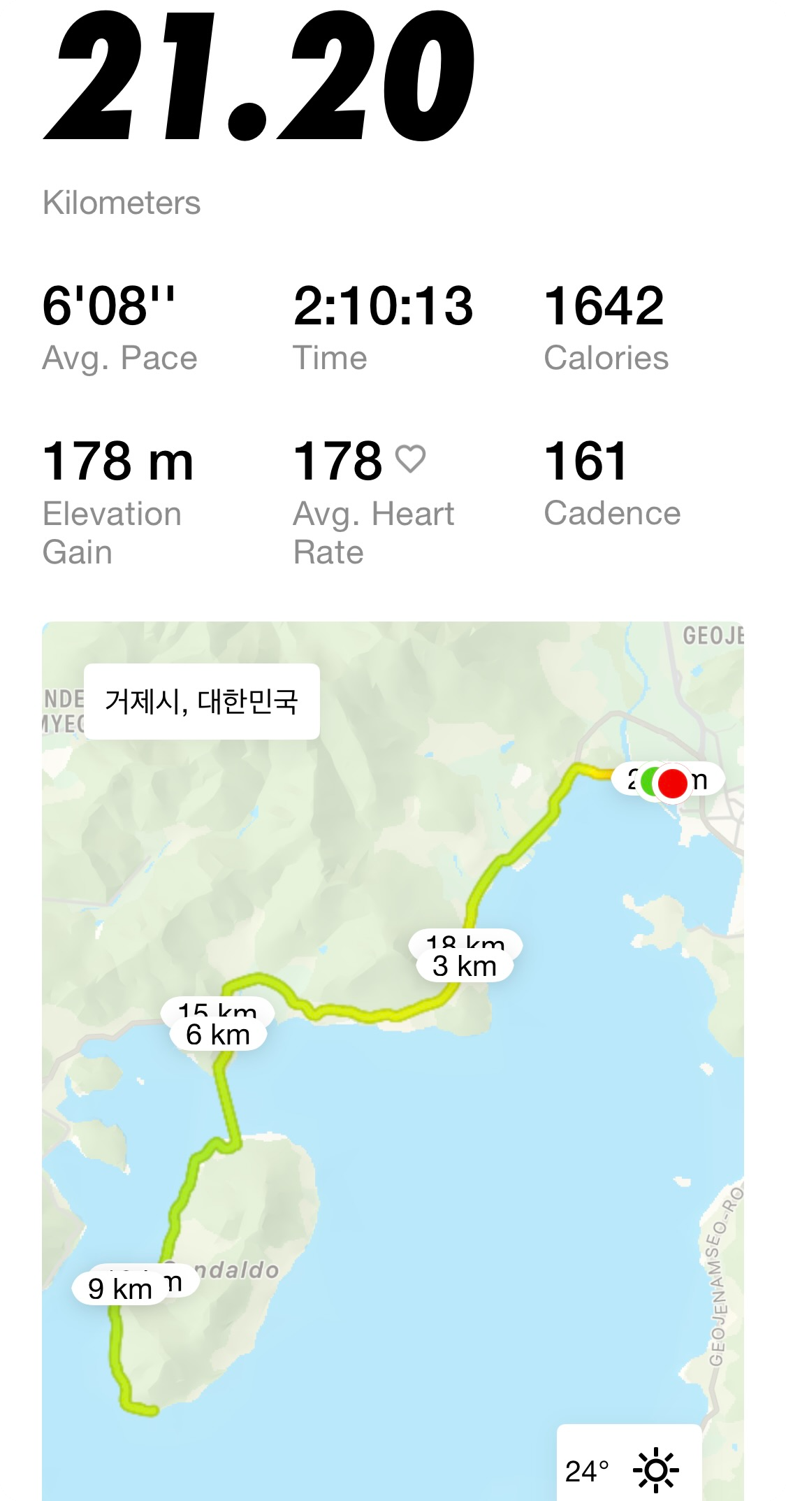 두 마라톤 다 경치가 인상깊을 정도로 좋았다는 건 확실히 기억한다. 거제도 마라톤에서 코스를 따라 펼쳐진 산과 바다는 마치 여행 온 듯한 느낌을 주기도 했다. 다대포 마라톤에서 낙동강하굿둑을 달릴 때 오른편의 낙동강 수면 위로 반짝이던 초대형 윤슬은 눈이 너무 부셔서 차마 오랫동안 시선을 둘 수가 없었다.